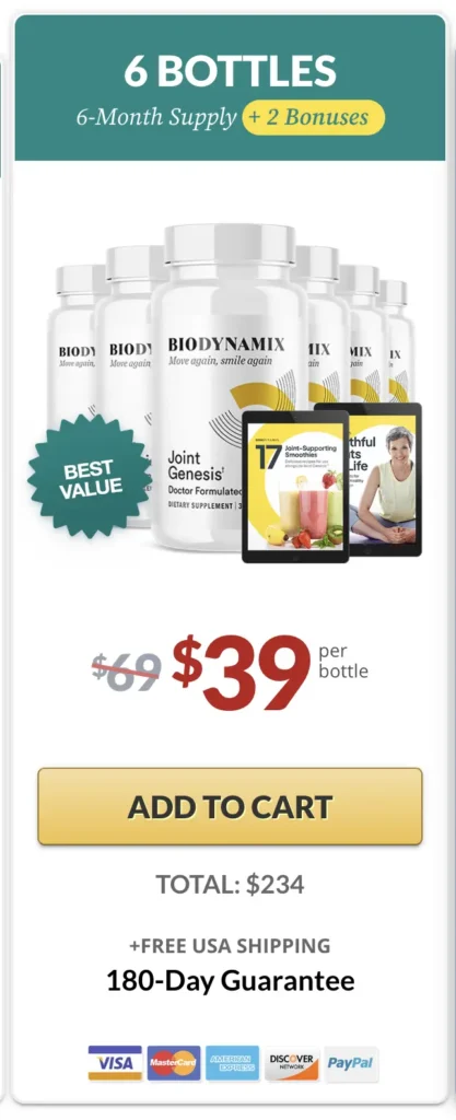 At this moment you can order Joint Genesis supplement for 43% OFF + FREE Shipping. This is a Limited-Time Offer and it won’t be available for long.